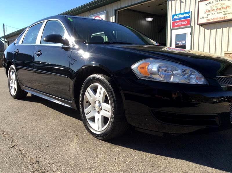LOCAL TRADE! 2013 CHEVY IMPALA LT WITH ONLY 120,000 miles! Just got in! Installing new tires! Stop in today! Call 507-894-2465 ONLY AT TRI-STATE AUTO OUTLET IN HOKAH, MN!Additional InformationBody Side Moldings - Body-Color, Exhaust Tip Color - Stainless-Steel, Front Bumper Color - Body-Color, Grille Color - Black, Mirror Color - Body-Color, Rear Bumper Color - Body-Color, Rocker Panel Color - Body-Color, Exhaust - Dual Tip, Steering Ratio - 13.3, Turns Lock-To-Lock - 2.4, Air Filtration, Dash Trim - Simulated Wood, Door Trim - Simulated Wood, Floor Mat Material - Carpet, Floor Mats - Front, Front Air Conditioning - Automatic Climate Control, Front Air Conditioning Zones - Dual, Shift Knob Trim - Leather, Steering Wheel Trim - Leather, Interior Accents - Chrome, Interior Accents - Woodgrain, Floor Mats - Rear, Assist Handle - Front, Cruise Control, Multi-Function Remote - Keyless Entry, Multi-Function Remote - Trunk Release, Power Steering, Remote Engine Start, Retained Accessory Power, Steering Wheel Mounted Controls - Audio, Dimming Rearview Mirror - Manual Day/Night, Steering Wheel - Tilt, Reading Lights - Rear, One-Touch Windows - 1, Power Windows - Lockout Button, Abs - 4-Wheel, Axle Ratio - 2.44, Front Brake Diameter - 11.9, Front Brake Width - 1.2, Front Stabilizer Bar - Diameter 28 Mm, Front Suspension Classification - Independent, Rear Brake Diameter - 10.9, Rear Brake Width - .43, Rear Stabilizer Bar - Diameter 16 Mm, Rear Suspension Classification - Independent, Rear Suspension Type - Multi-Link, Stability Control, Traction Control, Front Shock Type - Gas, Front Spring Type - Coil, Front Suspension Type - Lower Control Arms, Rear Shock Type - Gas, Rear Spring Type - Coil, Tuned Suspension - Touring, Front Struts - Macpherson, Rear Struts, Front Brake Type - Ventilated Disc, Rear Brake Type - Disc, Alternator - 150 Amps, Battery Saver, Antenna Type - Element, Compass, Driver Information System, External Temperature Display, Fuel Economy Display - Mpg, In-Dash Cd - Single Disc, Oil Monitor, Radio - Am/Fm, Speed Sensitive Volume Control, Trip Computer, Trip Odometer, Warnings And Reminders - Low Fuel Level, Total Speakers - 6, Gauge - Tachometer, Warnings And Reminders - Tire Fill Alert, Daytime Running Lights, Headlights - Auto On/Off, Headlights - Halogen, Tire Pressure Monitoring System, Spare Tire Mount Location - Inside, Spare Tire Size - Temporary, Spare Wheel Type - Steel, Tire Type - All Season, Wheels - Aluminum, Front Wipers - Intermittent, Power Windows, Window Defogger - Rear, Body Side Reinforcements - Side Impact Door Beams, Child Seat Anchors - Latch System, Crumple Zones - Front, Emergency Interior Trunk Release, Energy Absorbing Steering Column, Front Airbags - Dual, Impact Absorbing Bumpers, Side Airbags - Front, Side Curtain Airbags - Front, Anti-Theft System - Alarm With Remote, Anti-Theft System - Engine Immobilizer, Anti-Theft System - Audio Security System, Airbag Deactivation - Occupant Sensing Passenger, Side Mirror Adjustments - Power, 2-Stage Unlocking Doors, Crumple Zones - Rear, Child Safety Door Locks, Front Seat Type - Bucket, Front Seatbelts - 3-Point, Seatbelt Pretensioners - Front, Upholstery - Cloth, Driver Seat Power Adjustments - 6, Front Headrests - 2, Front Headrests - Adjustable, Rear Headrests - 3, Rear Headrests - Adjustable, Rear Seat Type - Bench, Rear Seatbelts - 3-Point, Seatbelt Warning Sensor - Front, Driver Seat Power Adjustments - Height, Driver Seat Power Adjustments - Reclining